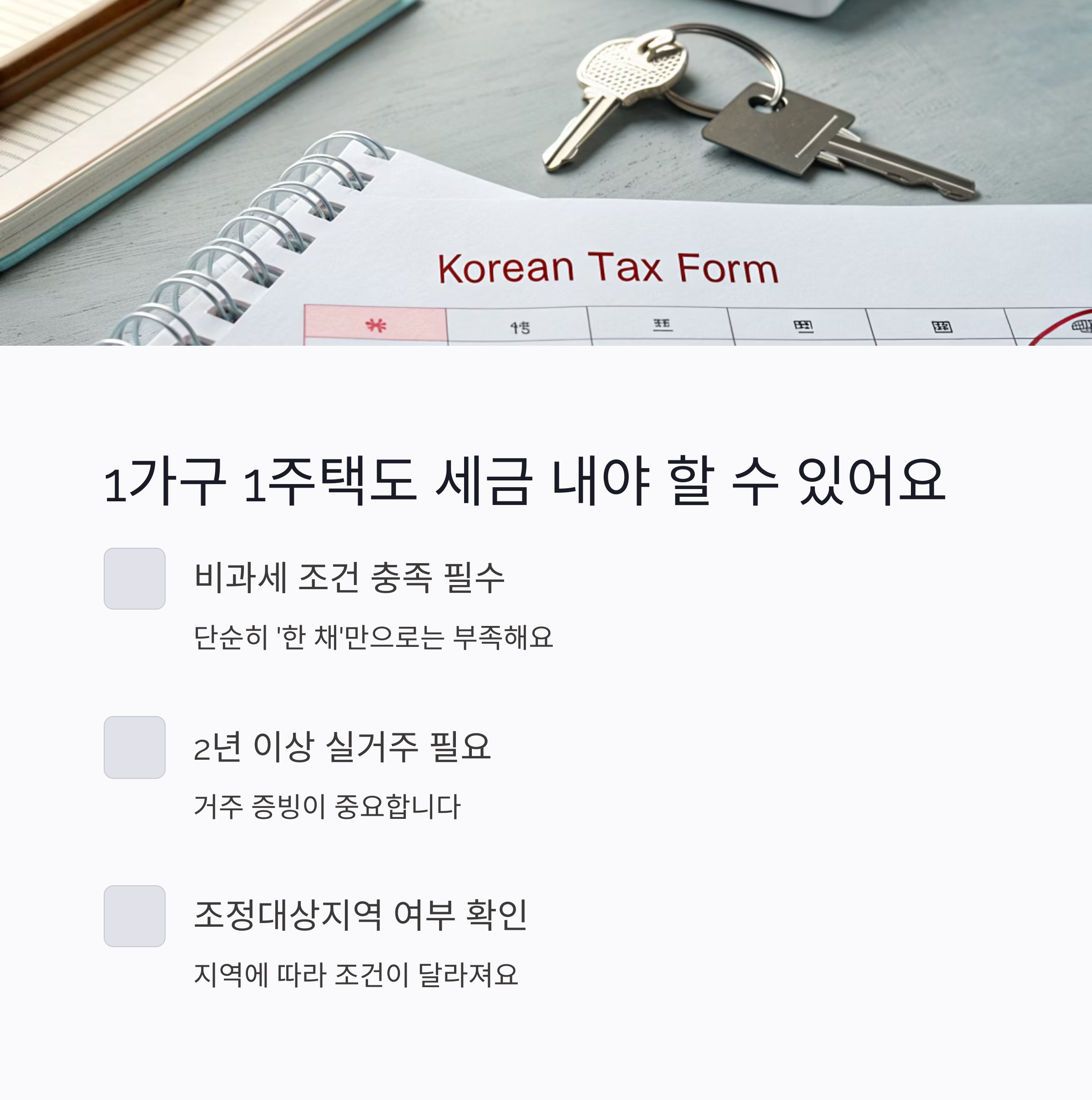 “한 채만 있는데 세금 낼 일이 있어요?” 라고 생각하셨다면, 이 글 꼭 끝까지 읽어보셔야 해요!