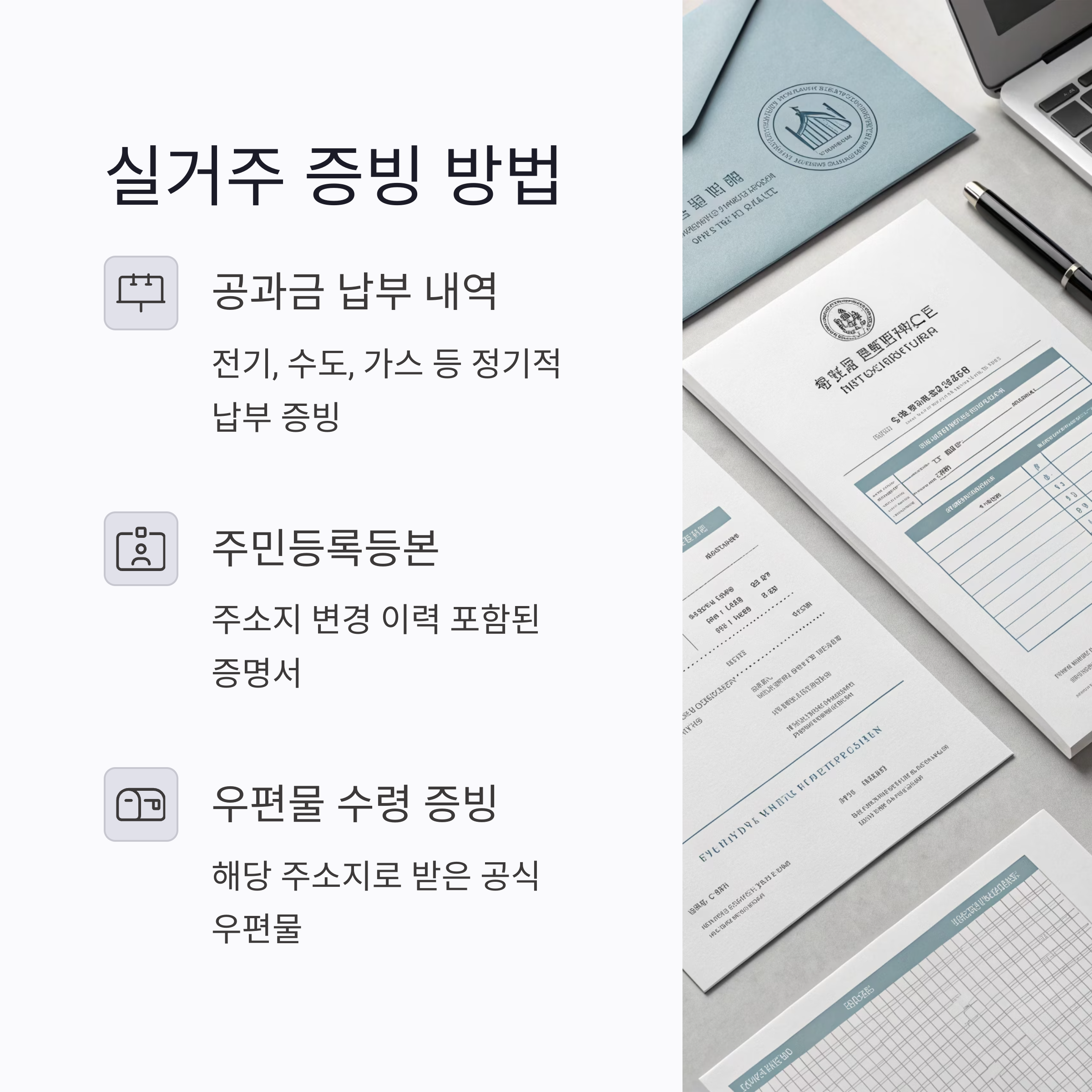 | 비과세 증빙 | 주민등록등본, 가족관계증명서, 실거주 증빙(공과금 내역 등) |