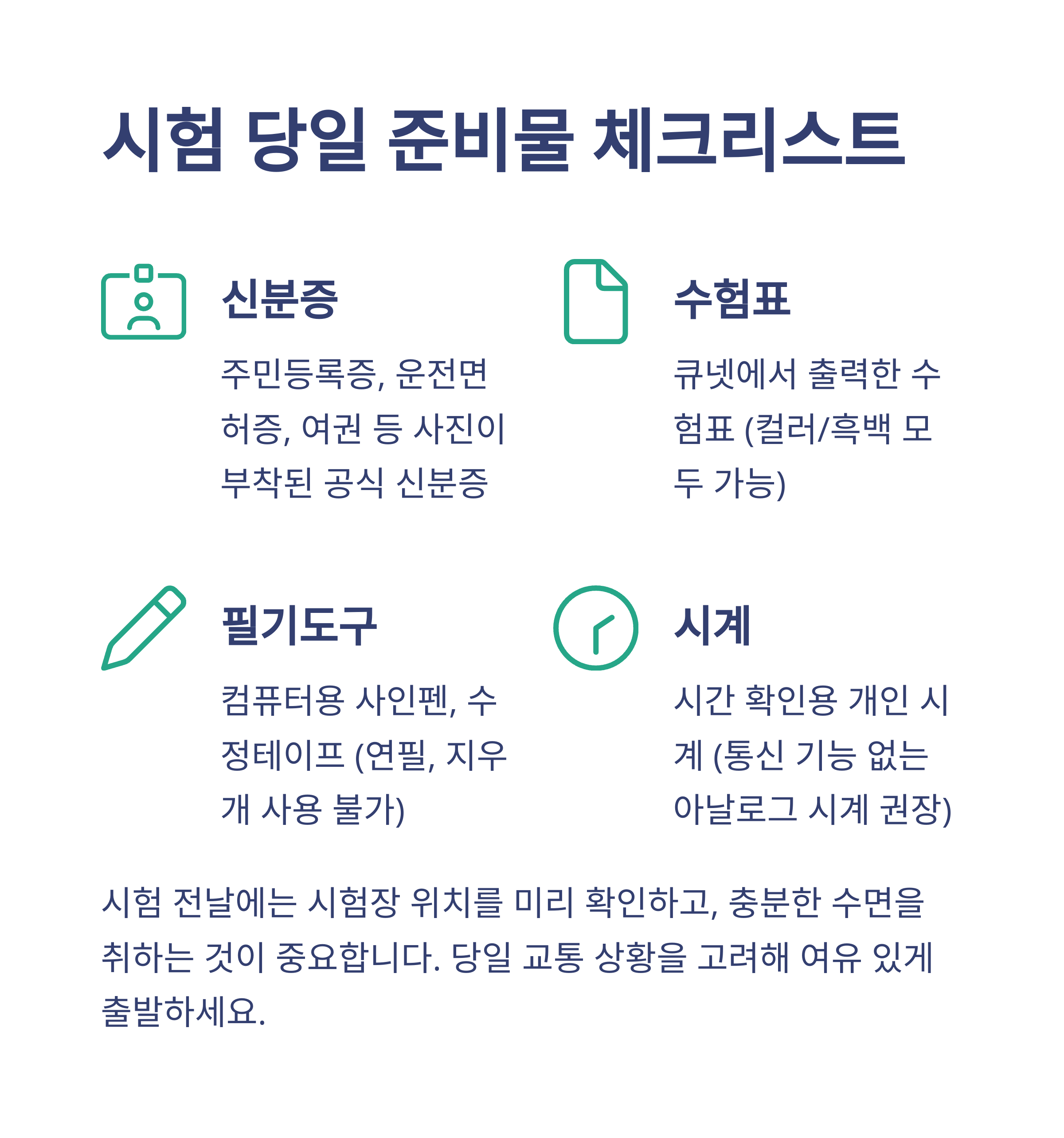 - 시험일 당일 준비물은 무엇인가요?
