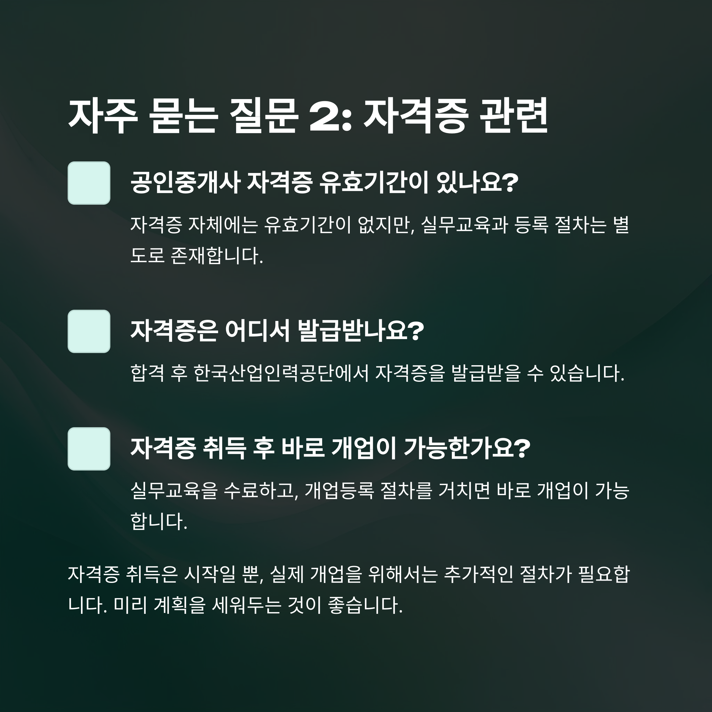 공인중개사 자격증 자체에는 유효기간이 없지만, 실무교육과 등록 절차는 별도로 존재합니다.