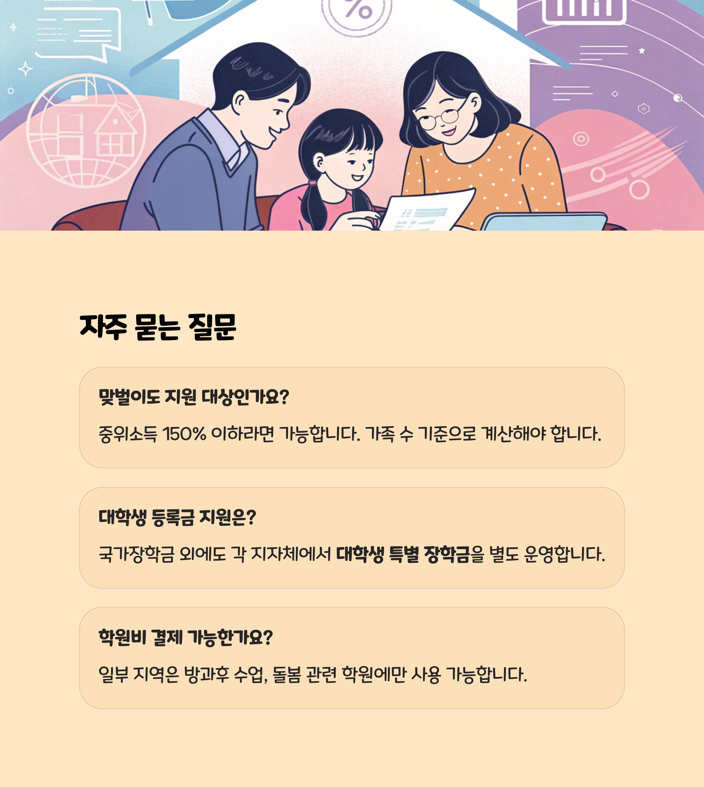 "자녀가 대학생인데 등록금 지원도 있나요?"