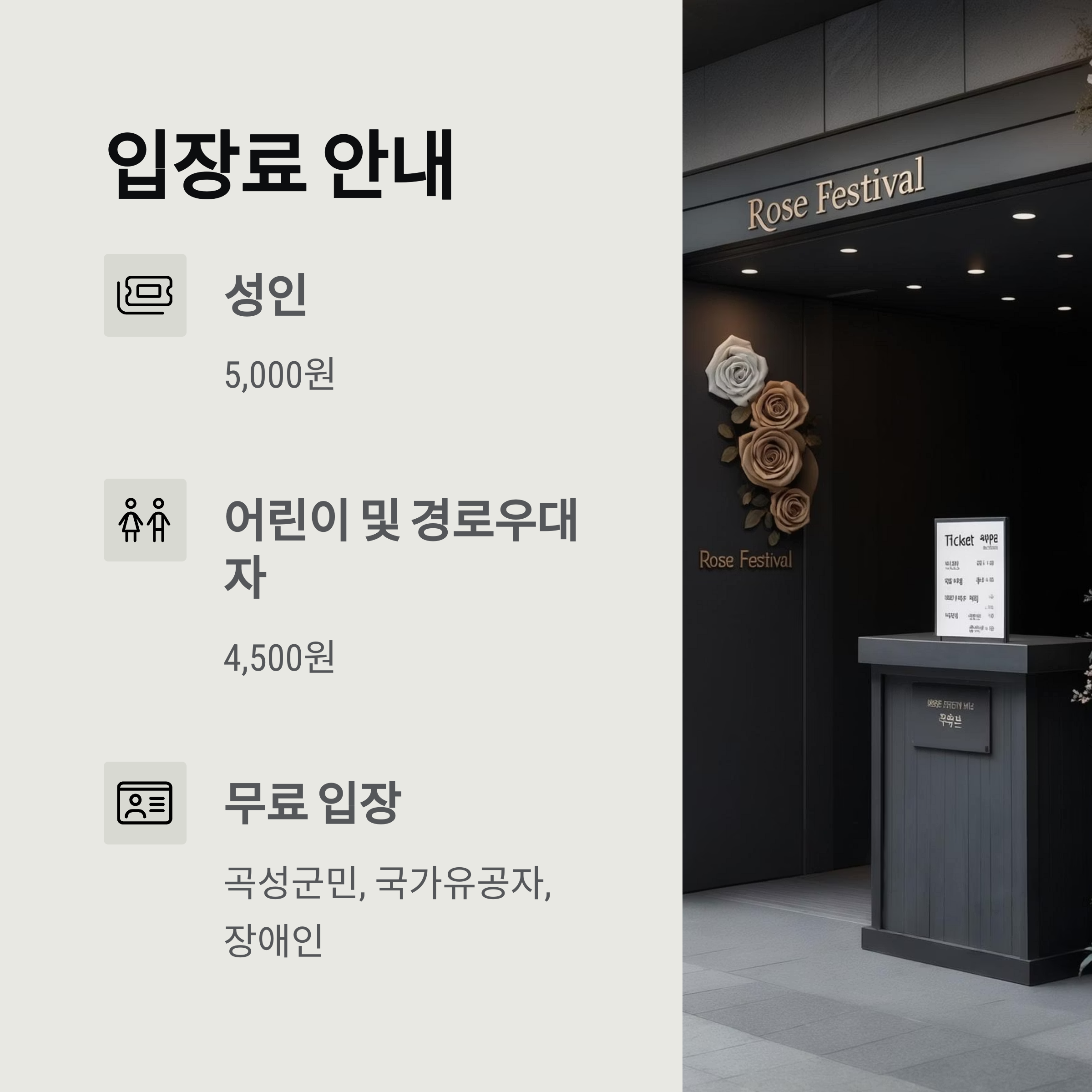 | 입장료 | 성인 5,000원 / 어린이 및 경로우대자 4,500원 / 곡성군민, 국가유공자, 장애인 무료 |