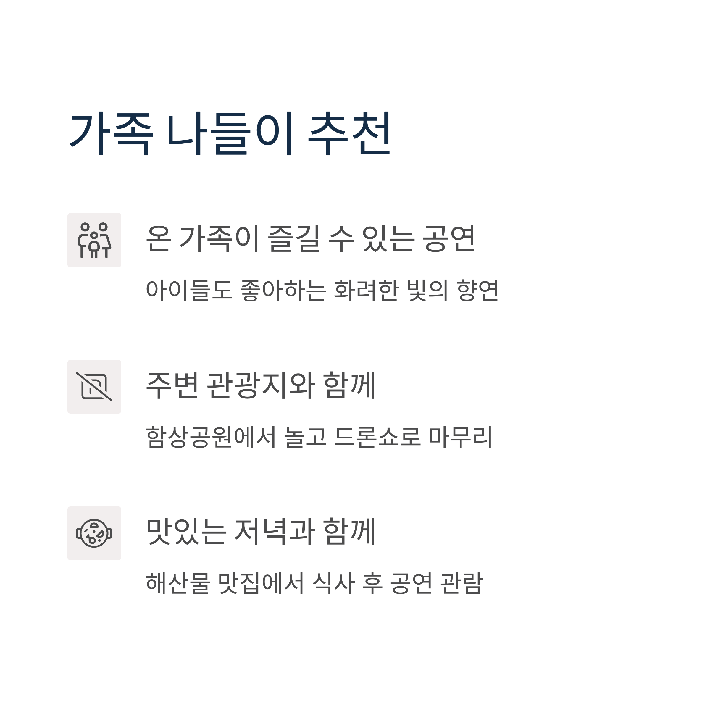 - 비 오는 날에도 하나요? → 기상 상황에 따라 취소될 수 있습니다.