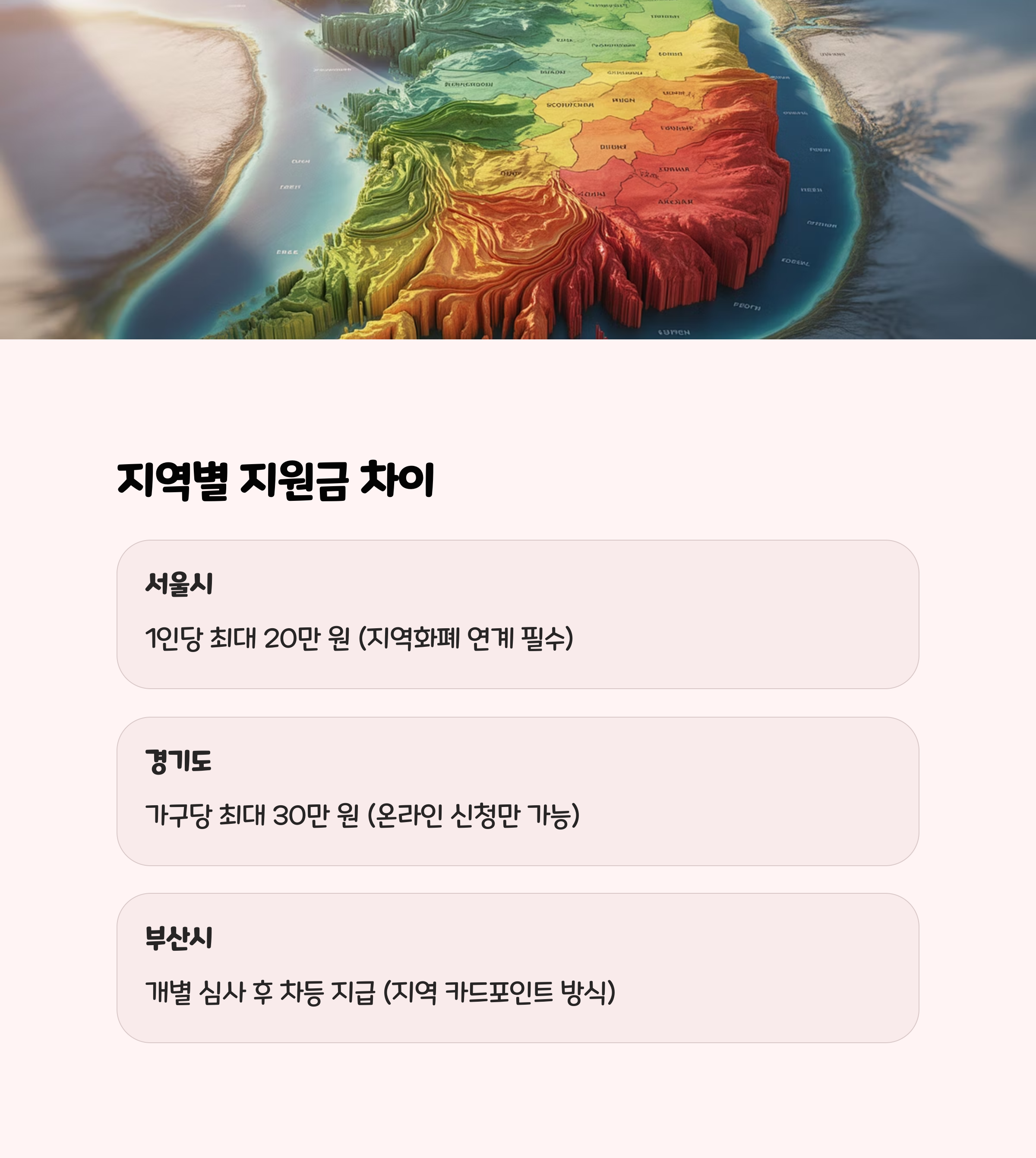 | 부산시 | 개별 심사 후 차등 지급 | 지역 카드포인트 방식 |