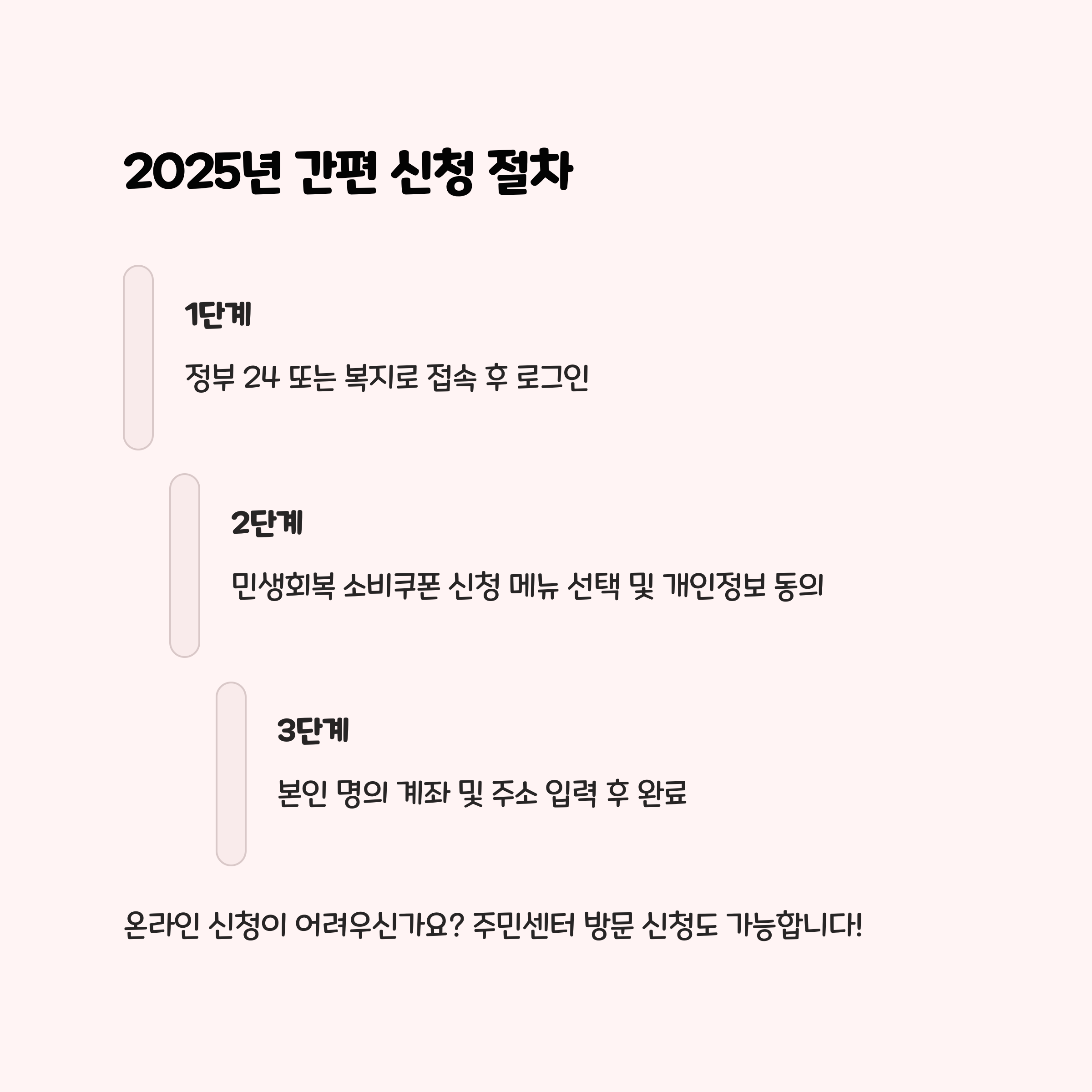 올해는 작년보다 신청 절차가 좀 더 간소화되었어요. 온라인 신청도 가능하고, 오프라인 주민센터 접수도 병행되니 자신에게 맞는 방법을 선택하면 됩니다.
