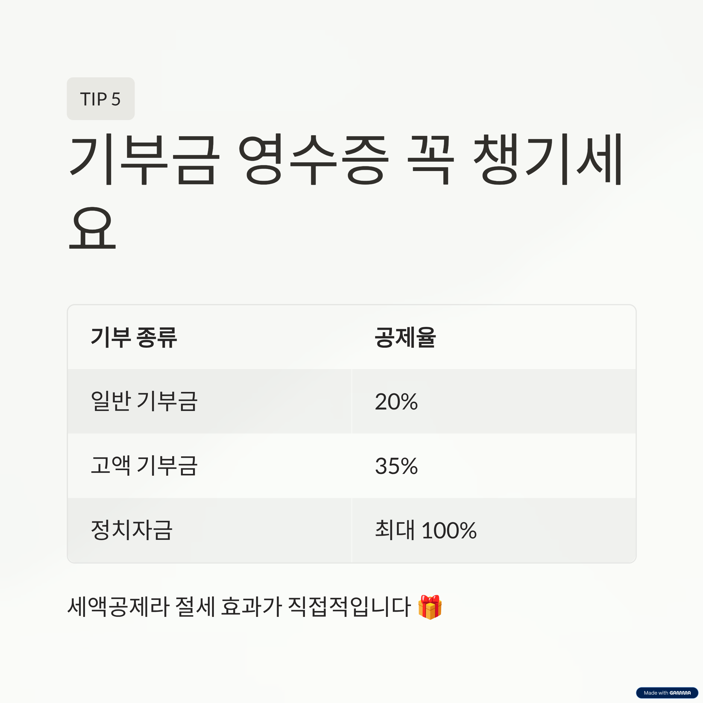 | 기부 종류 | 공제율 | 비고 |