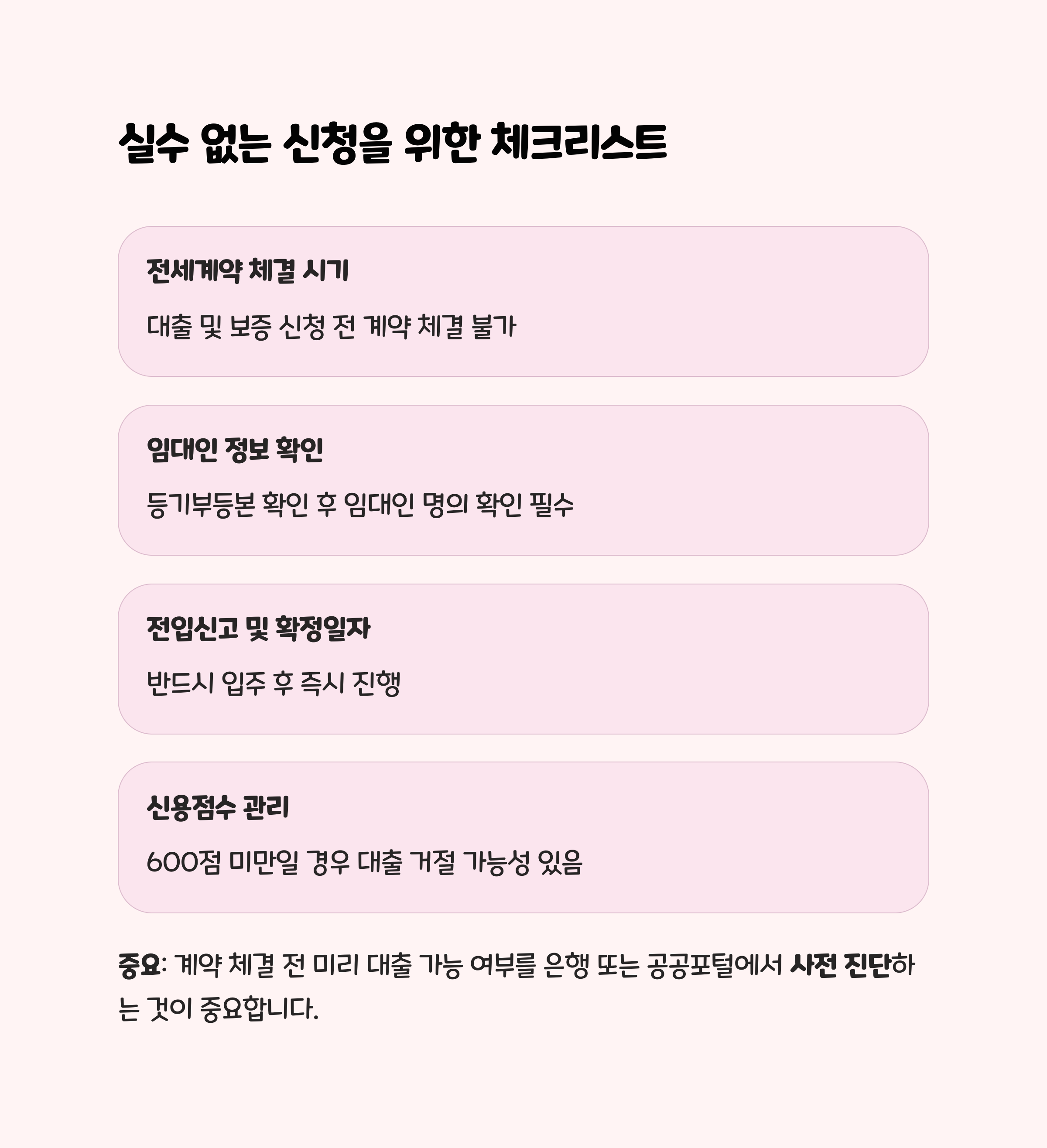 중요: 계약 체결 전 미리 대출 가능 여부를 은행 또는 공공포털에서 사전 진단하는 것이 중요합니다.