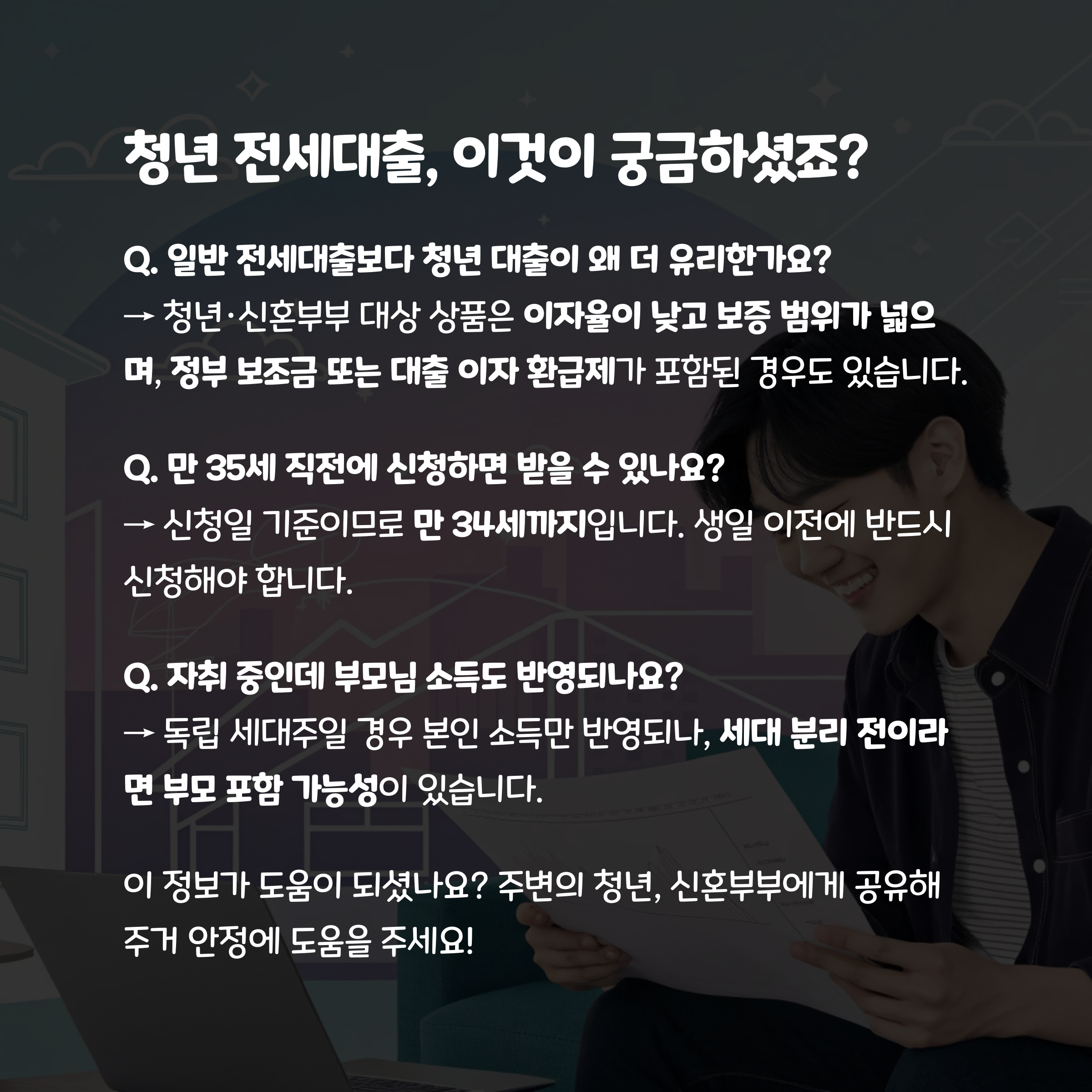 Q. 일반 전세대출보다 청년 대출이 왜 더 유리한가요?
