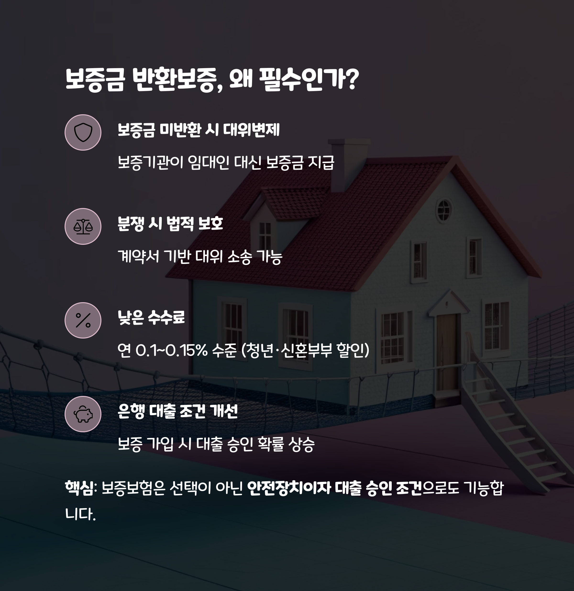 핵심: 보증보험은 선택이 아닌 안전장치이자 대출 승인 조건으로도 기능합니다.