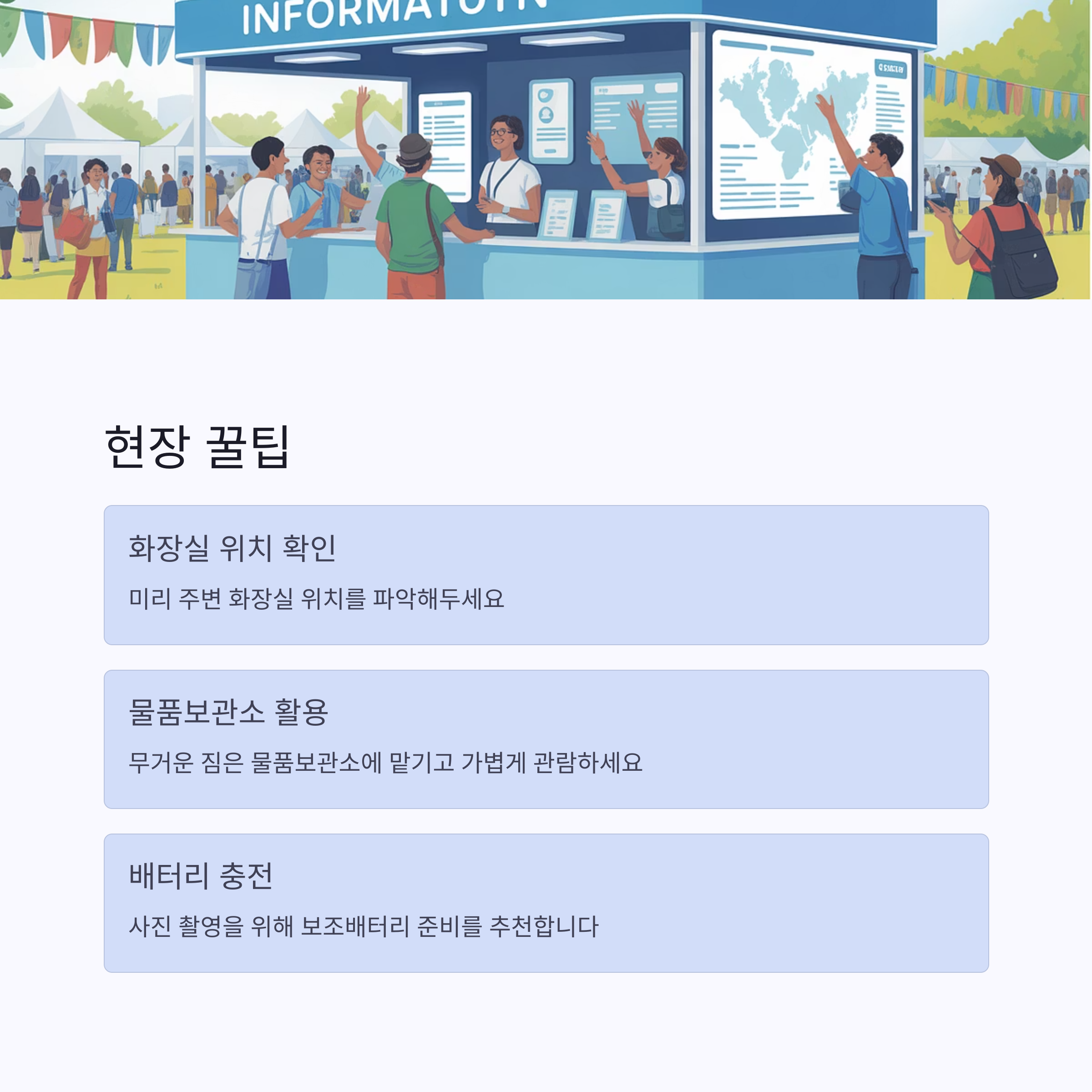 - 화장실 위치, 물품보관소 위치 사전 확인 필수!