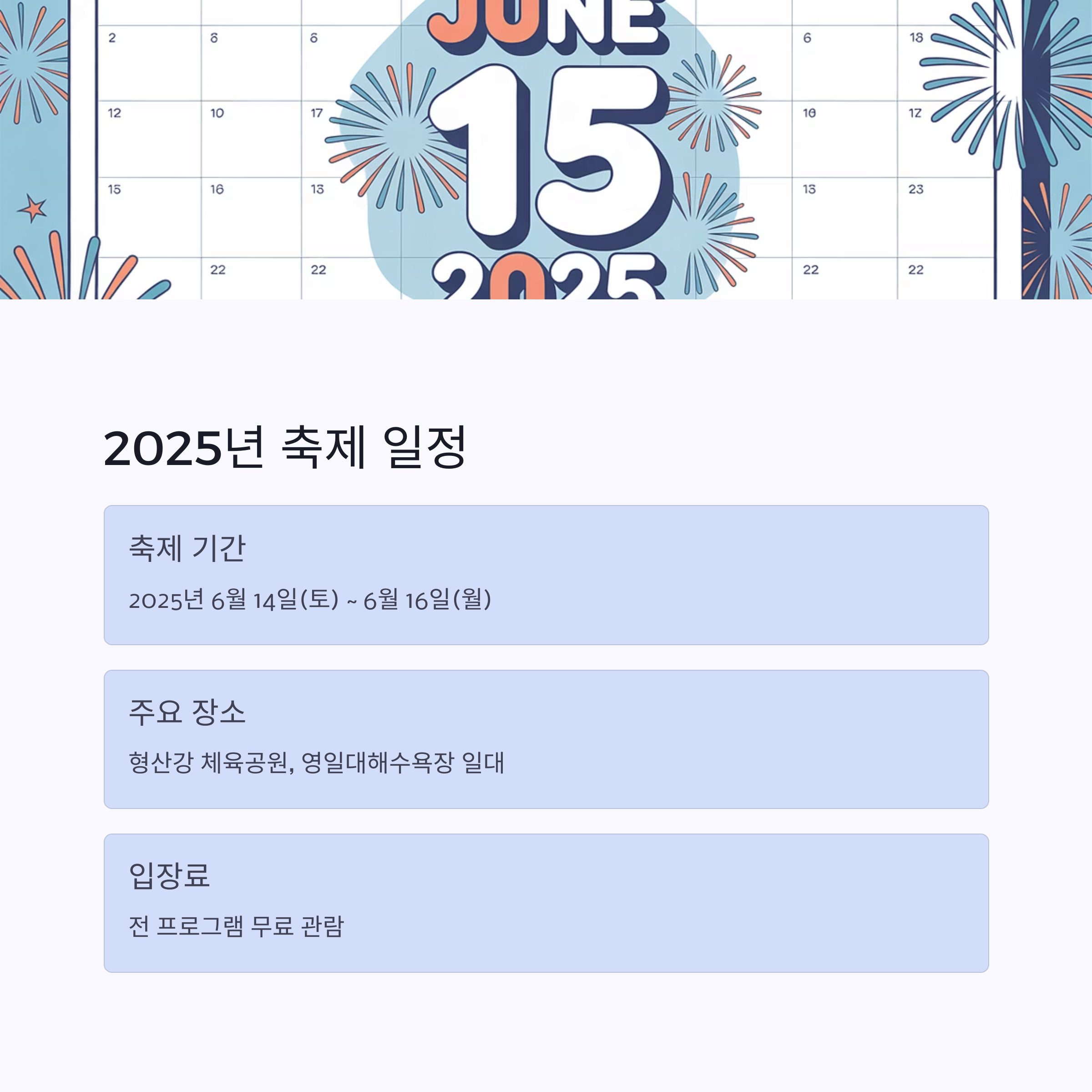 축제 기간 | 2025년 6월 14일(토) ~ 6월 16일(월) |
