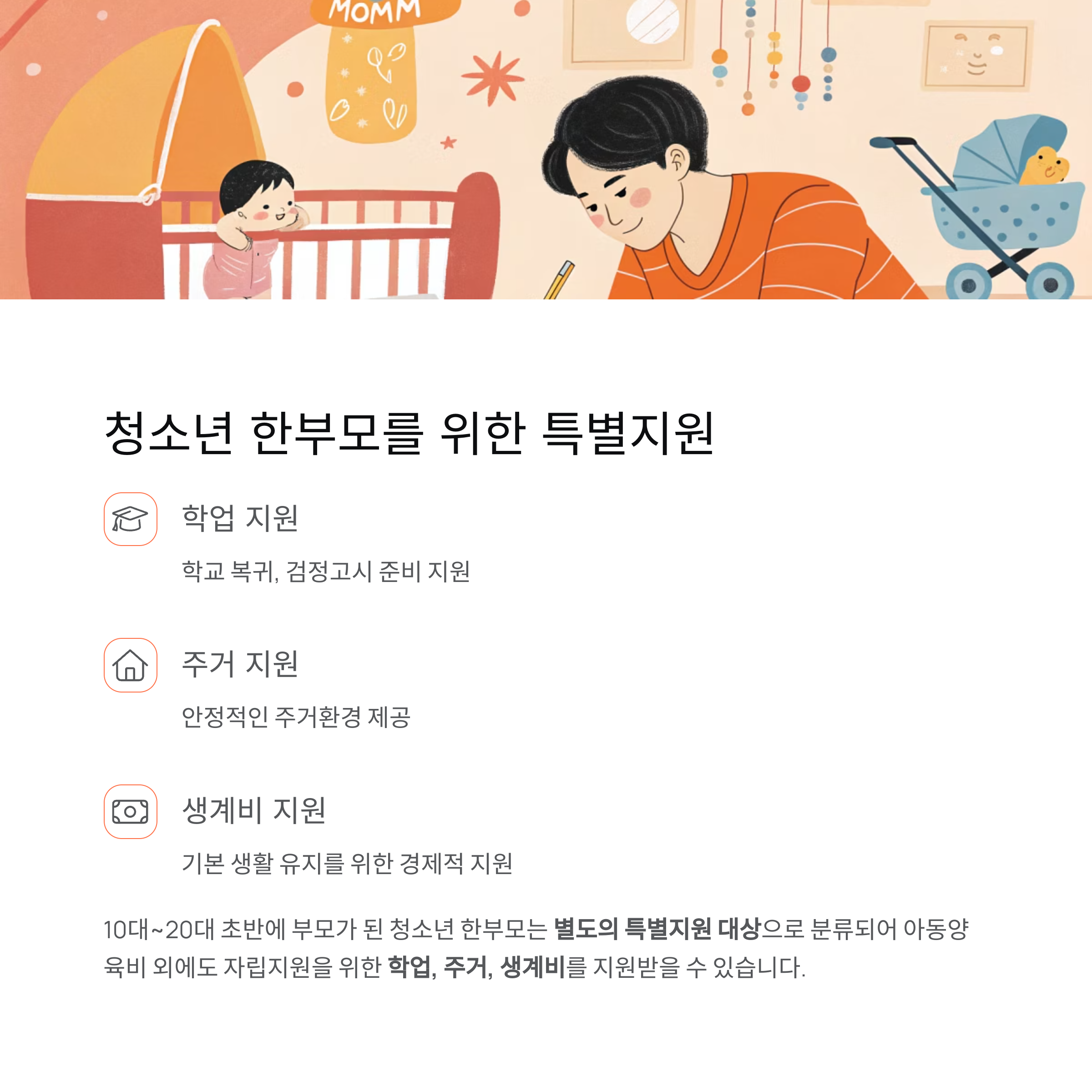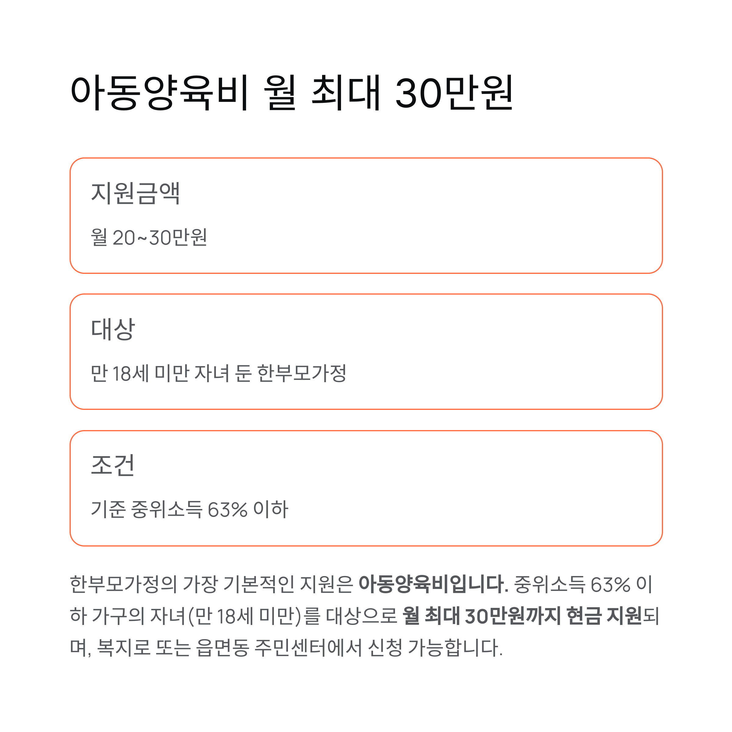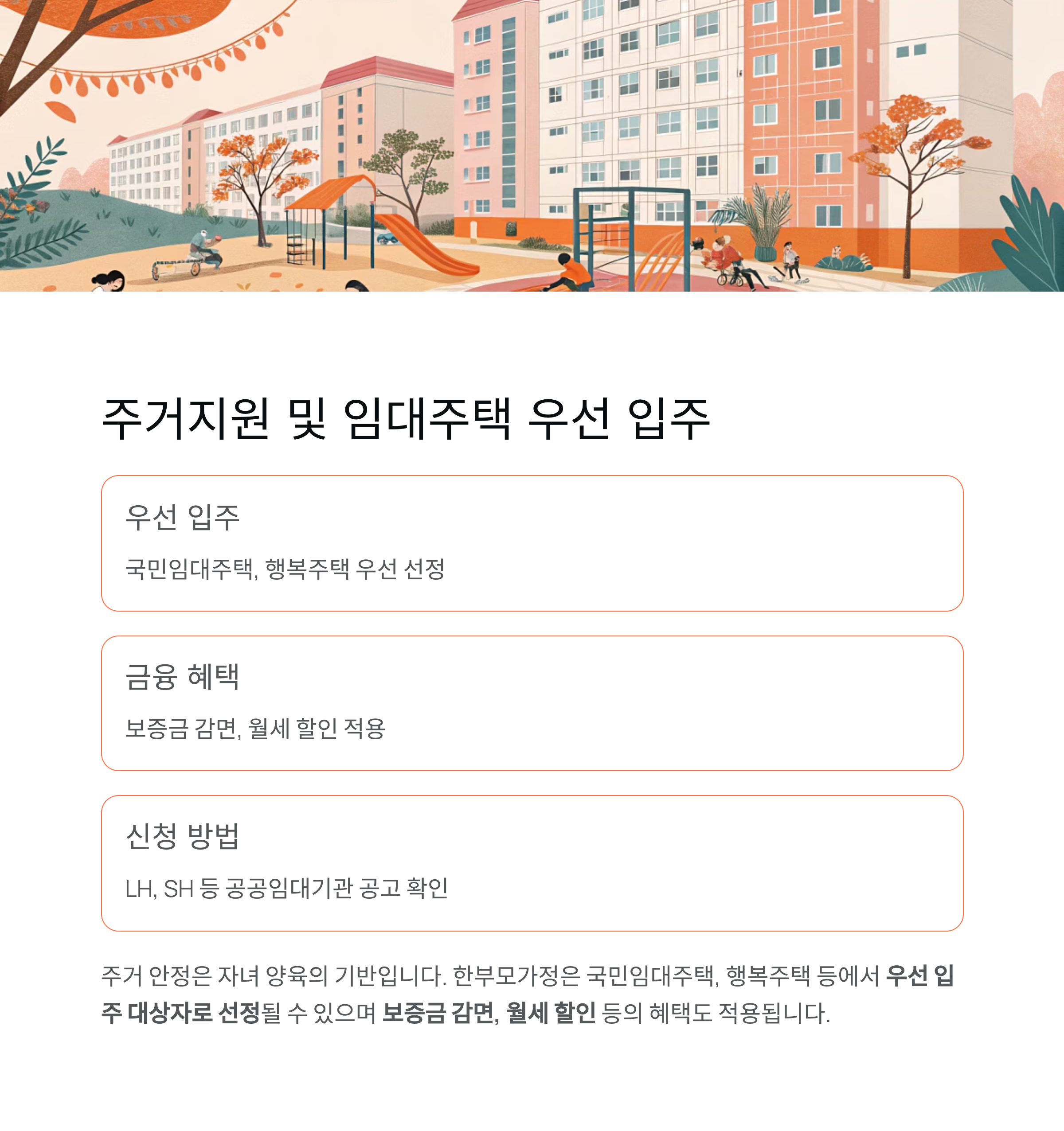 | 대상 | 만 18세 미만 자녀 둔 한부모가정 |