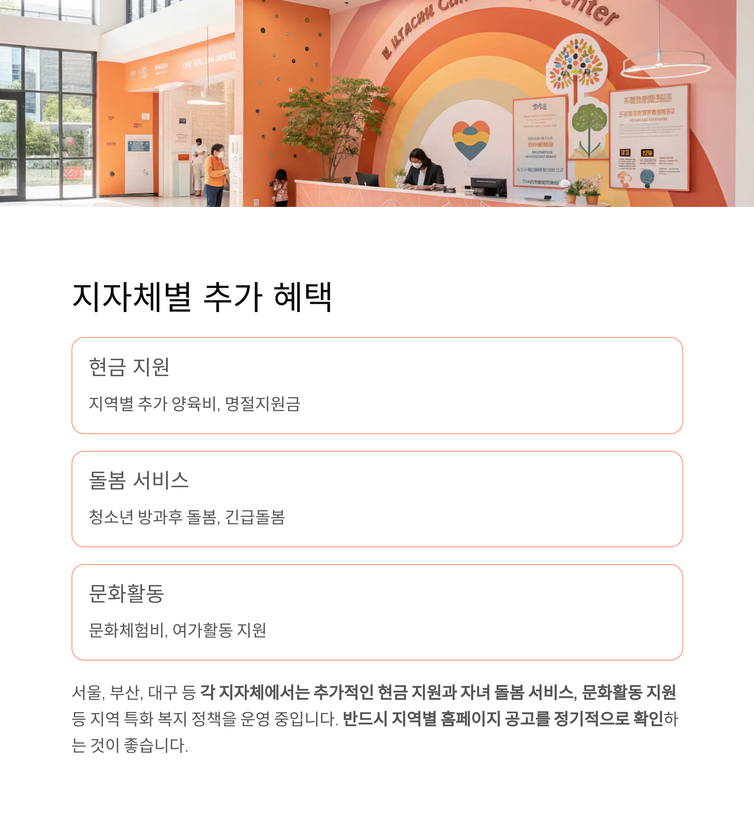 지금 바로 나와 내 아이를 위한 지원 혜택을 확인해보세요.