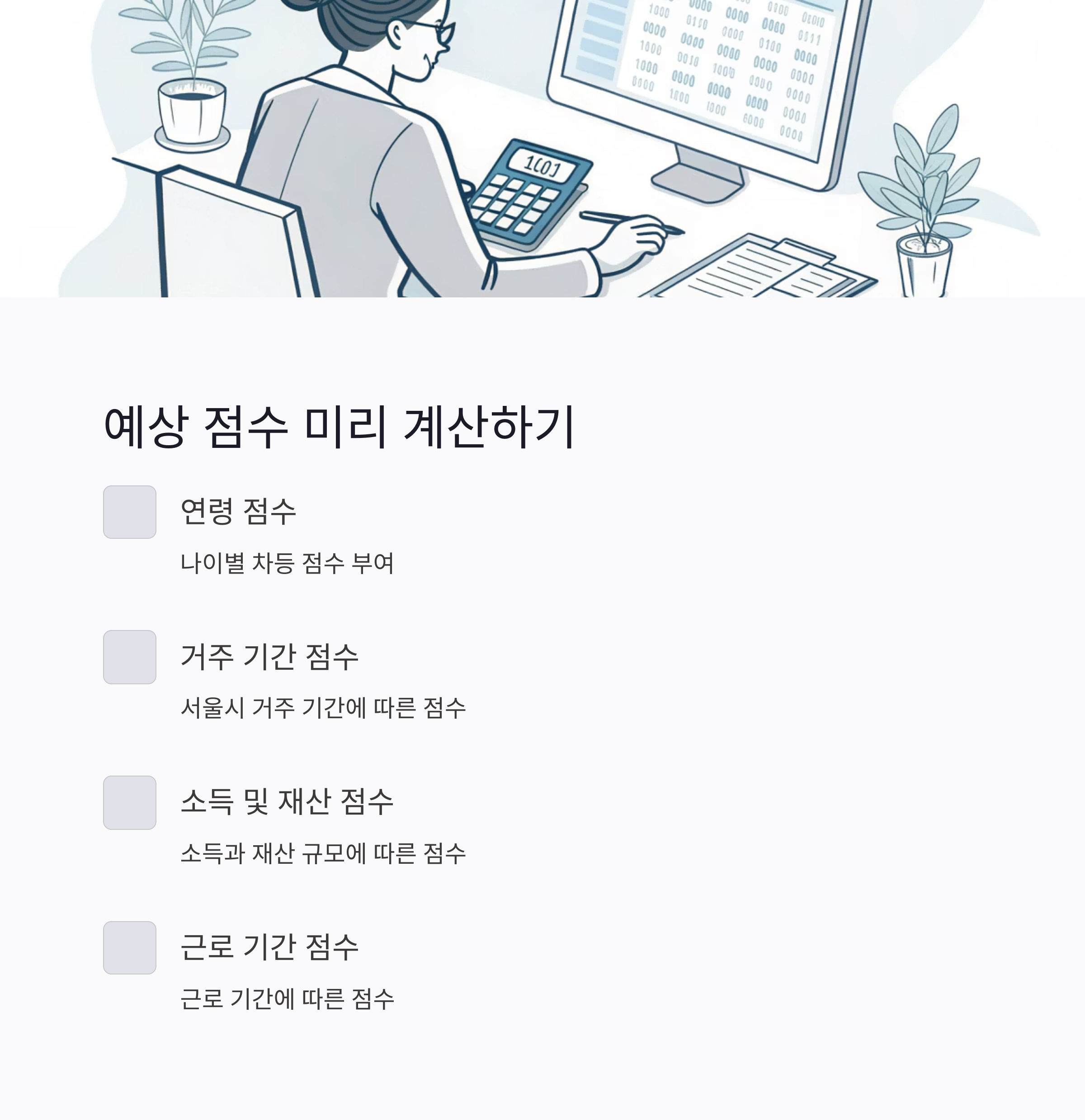 연령, 거주 기간, 소득, 재산, 근로 기간 등 항목별 점수를 합산해요.