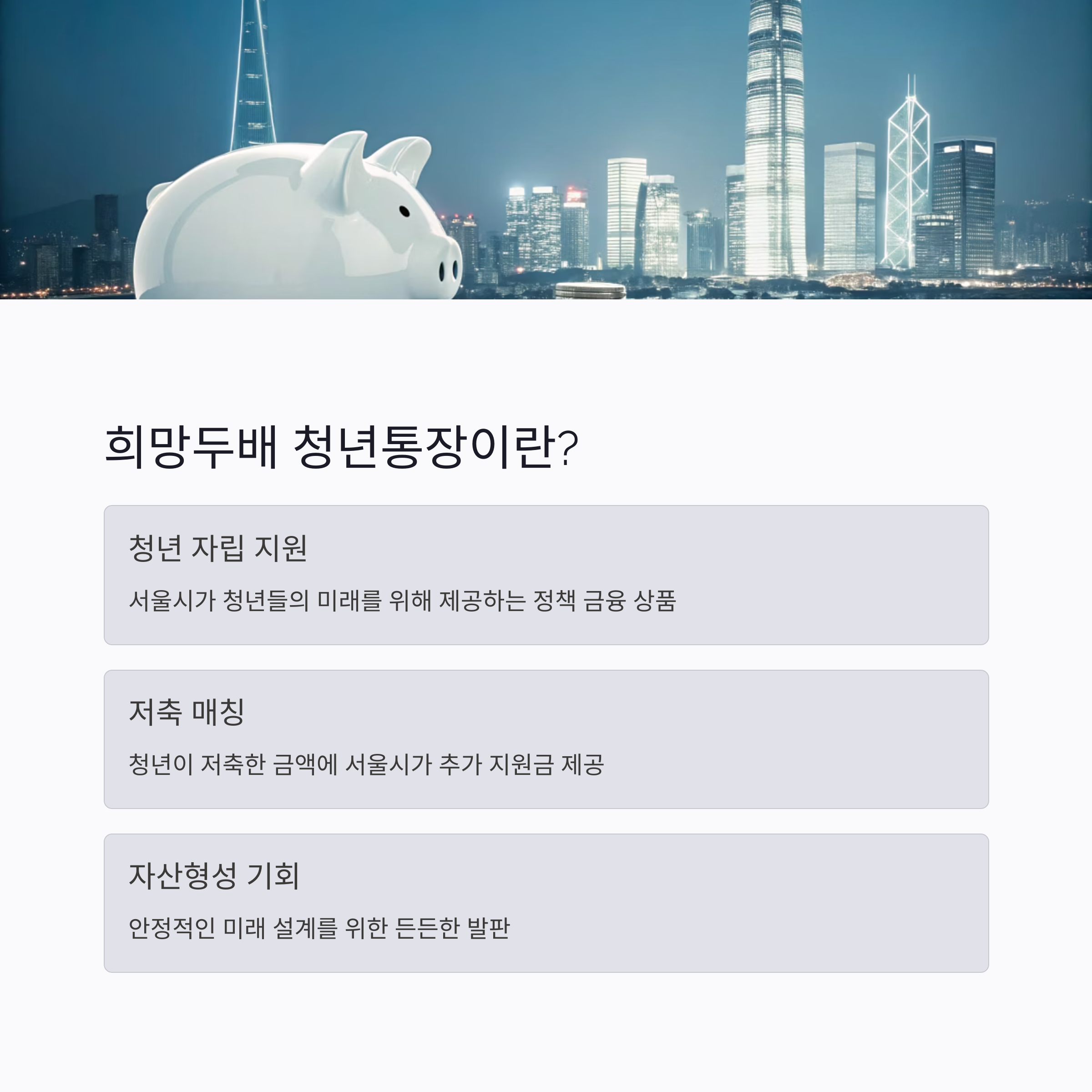 2025년, 서울시의 희망두배 청년통장이 돌아왔어요! 청년들의 자립을 돕는 매력적인 정책 금융 상품인데요, 조건, 신청 방법, 꿀팁까지 모두 알려드릴게요. 지금부터 희망두배 청년통장의 모든 것을 파헤쳐 볼까요?