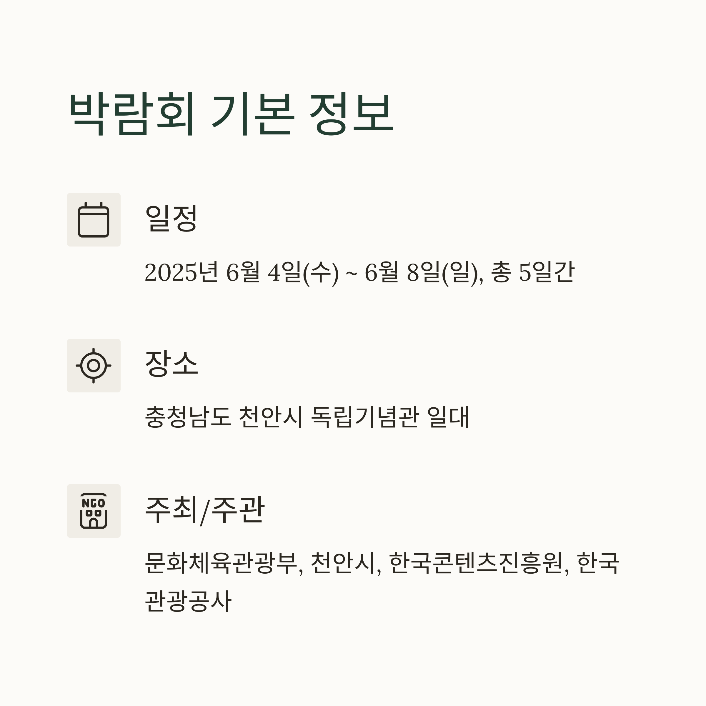 | 행사명 | 2025 천안 K-컬처 박람회 (K-Culture Expo 2025) |