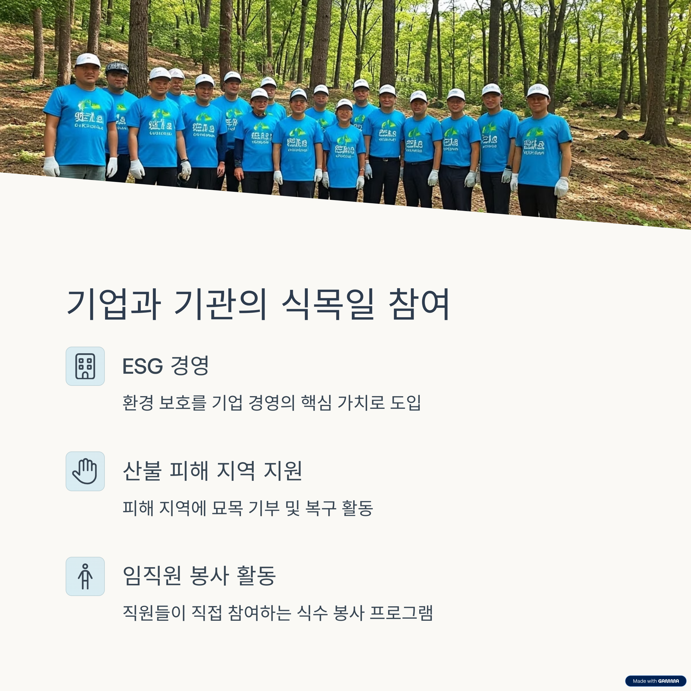 진정한 '현대식 식목일'의 모습이라 할 수 있습니다.