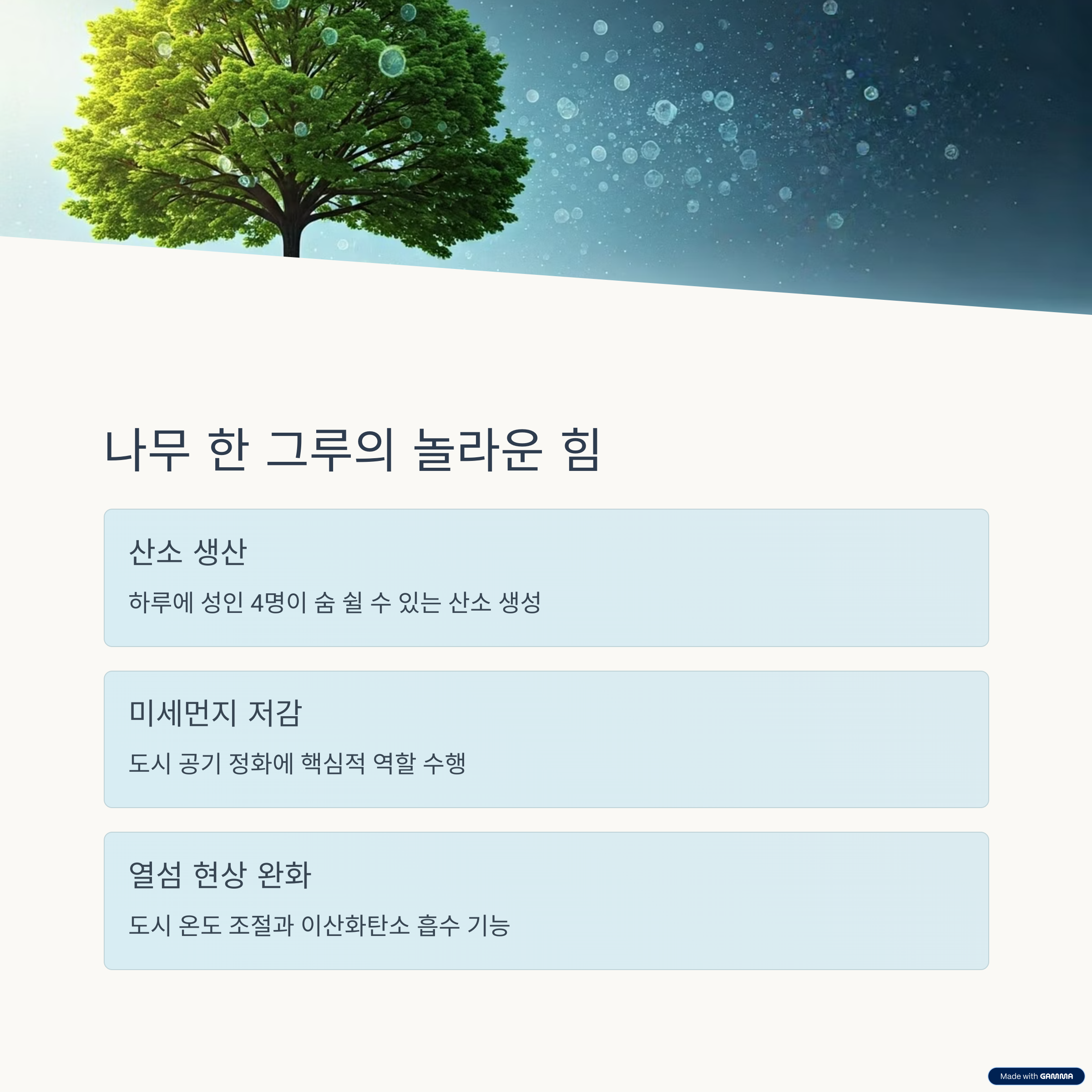도시 환경 문제 해결에 나무는 핵심적인 역할을 합니다.