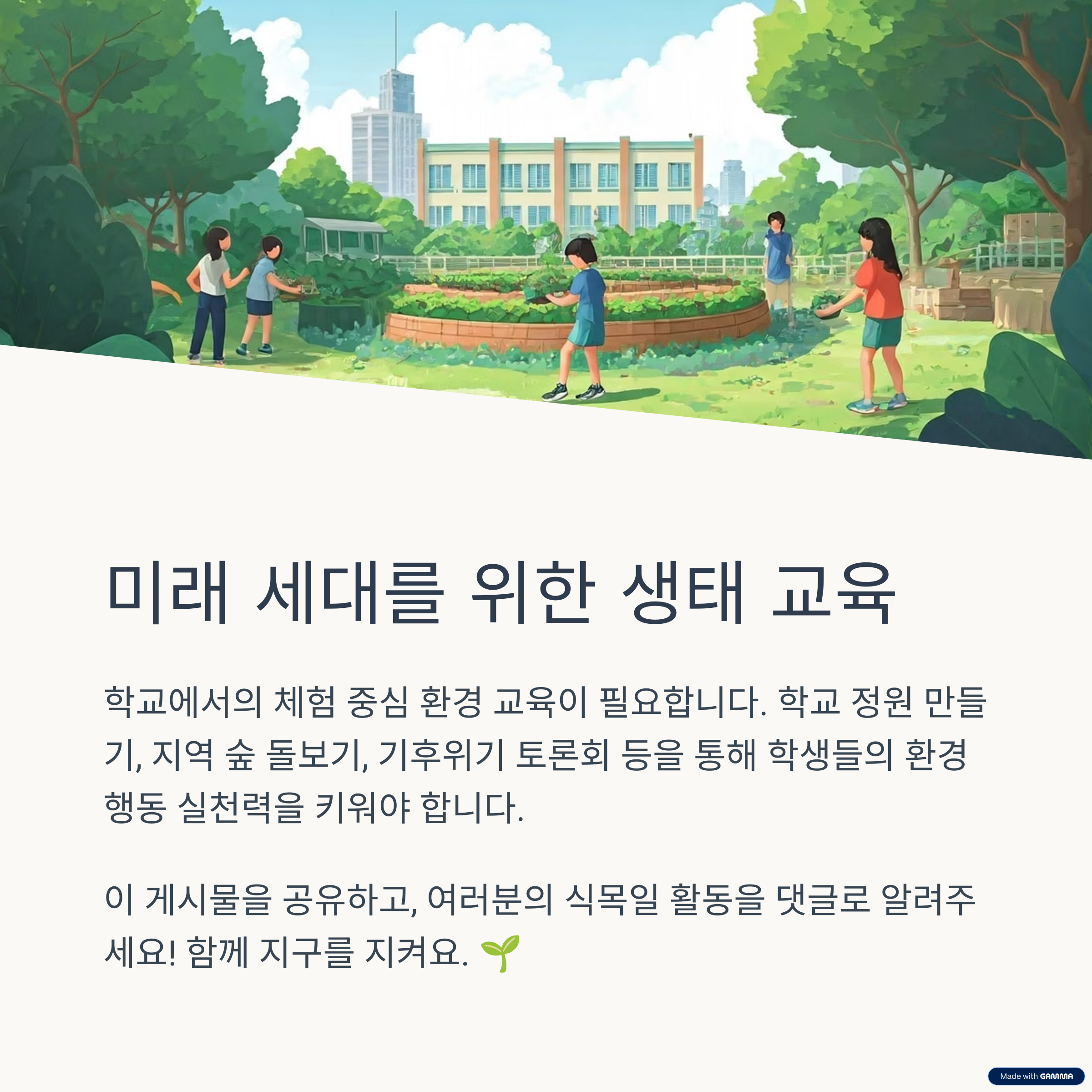 학교 교육에서도 식목일은 생태 감수성을 키우는 기회로 활용되어야 합니다.