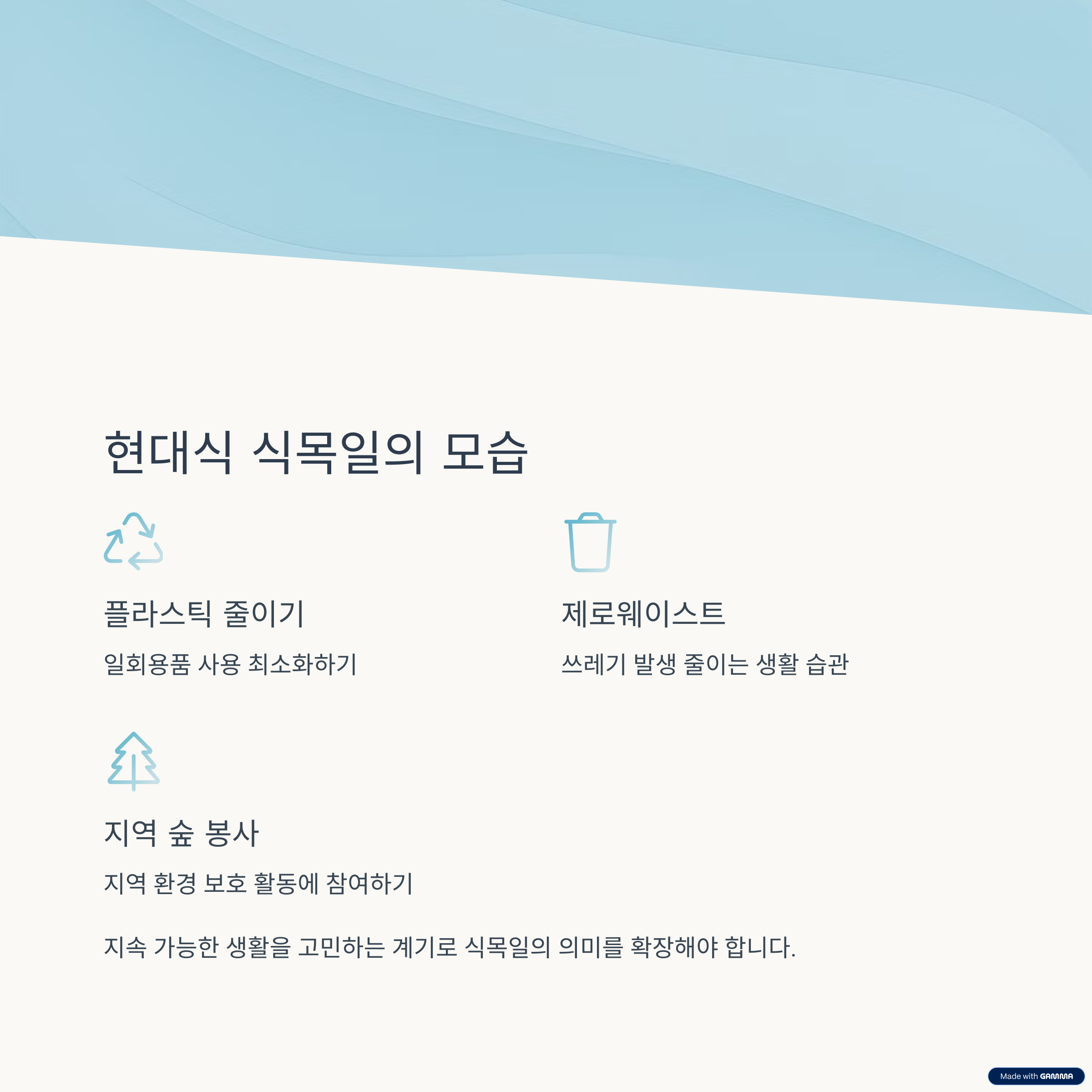 환경을 위한 작은 습관이 매일의 식목일이 될 수 있습니다.