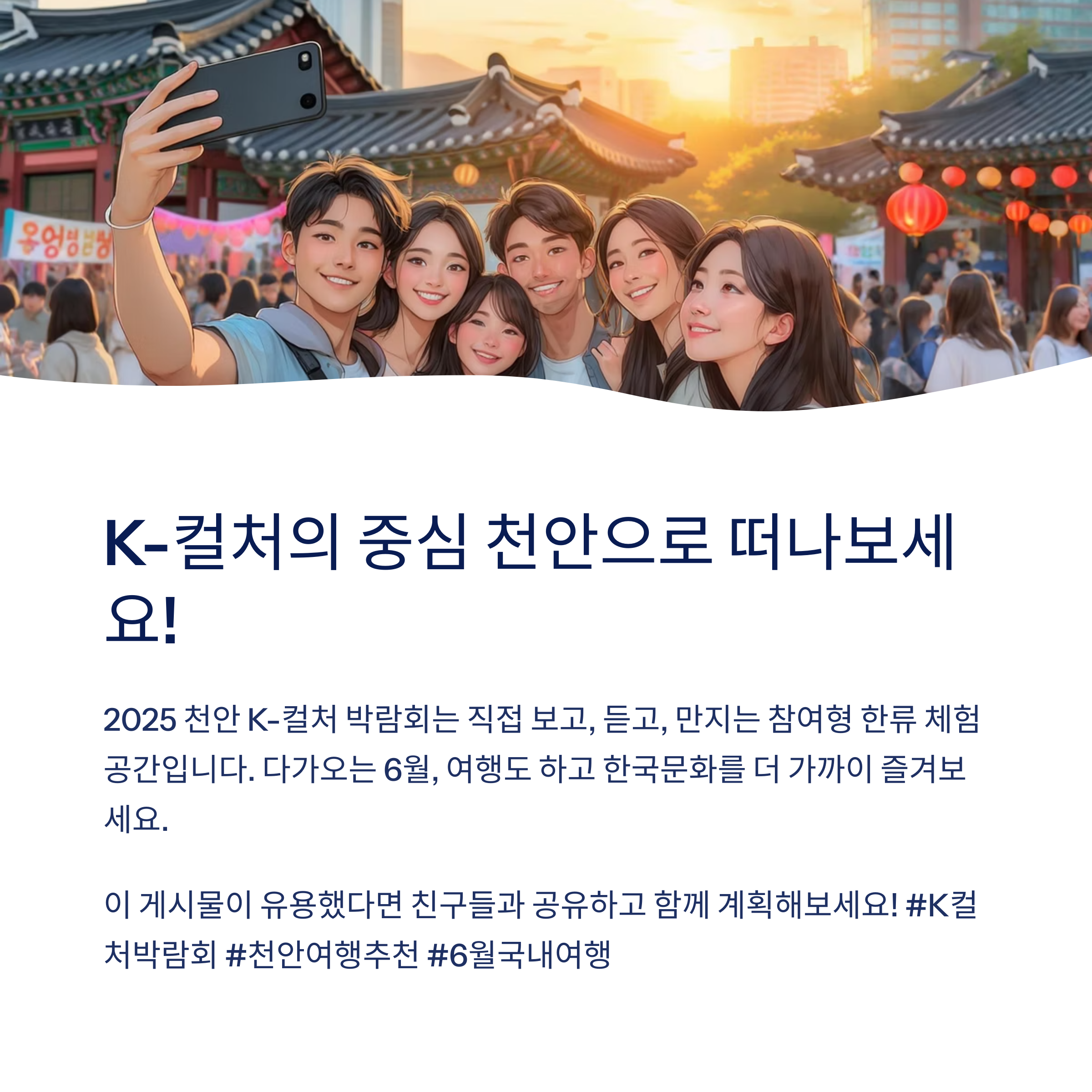 그렇다면 충남 천안에서 열리는 2025 천안 K-컬처 박람회가 제격입니다.