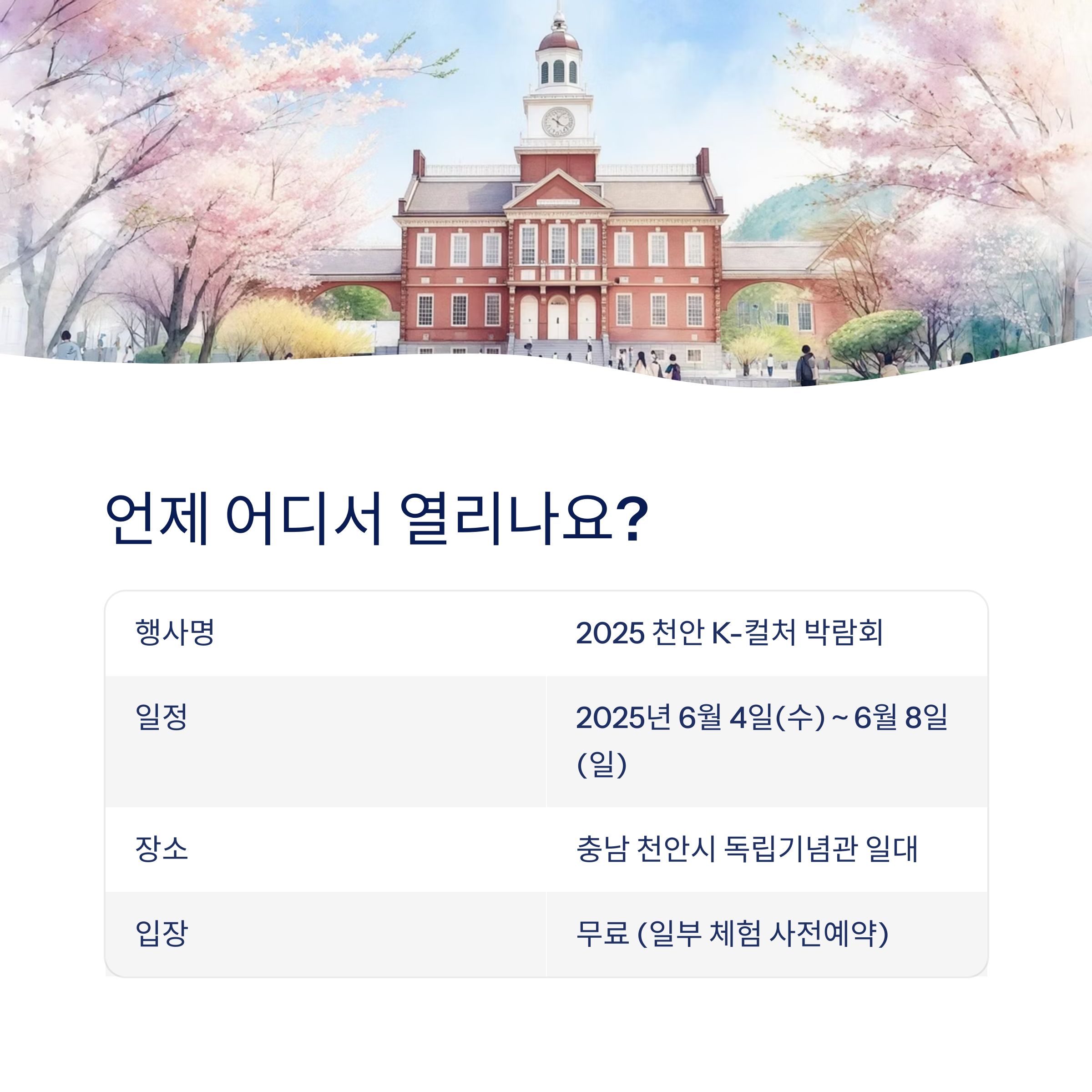 | 행사명 | 2025 천안 K-컬처 박람회 (K-Culture Expo 2025) |